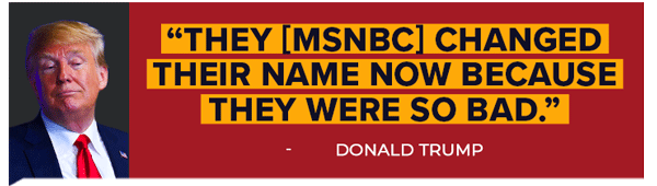 | Donald Trump is SLANDERING MSNBC/MS Now in an attempt to kick them off the air! This weekend, MSNBC became MS NOW. If we do nothing, Trump will take MS NOW off the air, and punish everyone who criticizes him. We can’t let that happen… So we need a MASSIVE wave of support behind MSNBC/MS NOW: At least 100,000 signatures by NOON tomorrow! Will you sign now? 100,000 SIGNATURES NEEDED: Stand with MSNBC/MS Now against Donald Trump's attacks>> MSNBC/MS NOW fiercely combats Donald Trump's lies... so Trump is doing everything he can to stop them from telling the truth!! We need to show that Democrats coast-to-coast stand with MSNBC/MS NOW so they can keep fighting back against MAGA lies. With a petition FULL of signatures from every state, we’ll show Trump that he can’t get away with censorship and that we WON’T BACK DOWN. But we’re still behind on signatures from your state, so we’re asking you: Will you add your name to stand with MS NOW against Donald Trump? >> Thanks for doing your part, - Progressive Turnout Project |