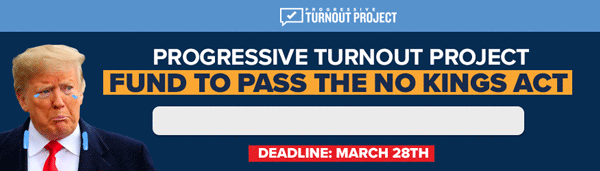 | | | Thank you for supporting the Progressive Turnout Project. We’re a 100% grassroots-funded organization with a single mission: rallying Democrats to exercise their right to vote. Our Mission: Rally Democrats to Vote. | | | | | The best way to turn out voters is with one-on-one conversations. Progressive Turnout Project is built around this truth, proven time and time again by researchers — including us. On average, our field work boosts voter turnout by more than 10 percent. How are we different from everyone else sending you emails? Our Turnout Teams talk to inconsistent voters who are likely Democrats, so they don’t need persuading on who to vote for. They just need a nudge, some information, and to hear from a real person. That means every eligible non-voter we’re able to reach brings Democrats closer to success on Election Day. Compared to expensive TV ads, research has proven we have a much larger impact for our investment. Look, that's why we send you so many emails. The success of our work can make or break an election. And we're entirely funded by grassroots donors. If you want to unsubscribe, click here. If you want to receive fewer emails, click here. If you'd like to donate, please click here. From the entire Progressive Turnout Team, thank you for your support!